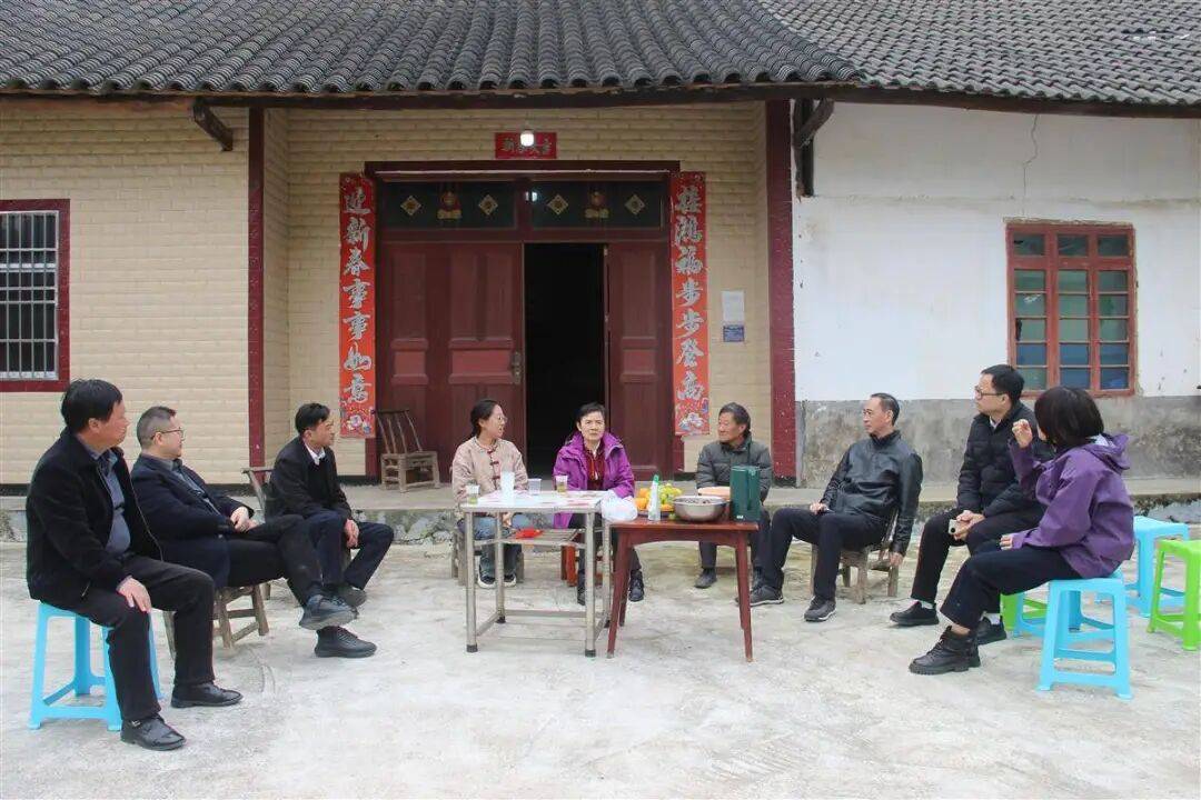 2025年,东风公司到恩施市新塘乡双河居委会上坝组村民王群杰(左四)家入户走访援建产业公路带动产业发展情况。(资料图片)