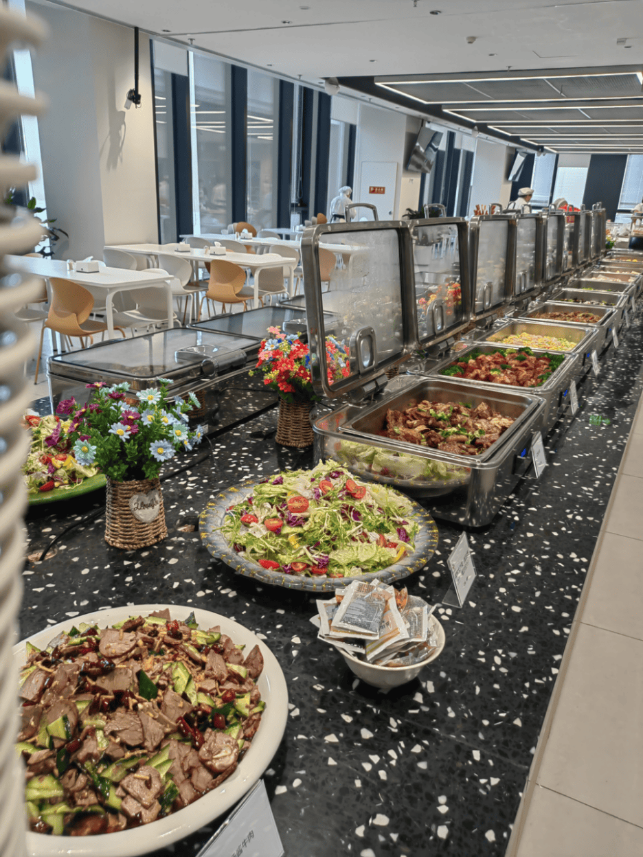 在菜品方面,公司组建了一支1000 + 人的服务团队,平均拥有10年以上团餐从业经验,精通川、鲁、粤、苏等8大菜系,可支持1000 + 菜品的定制化开发。推出中西结合菜单,结合节日、节气、企业纪念日等节点设计主题餐品,注重营养与体验的双重提升,满足不同地域、不同口味偏好的客户需求,实现 美味与营养兼顾、标准化与个性化统一。